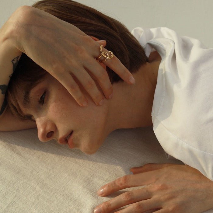 Deze unisex ring is een perfecte balans tussen minimalisme en statement. Het gekruiste, geometrische design geeft een moderne edge, terwijl de glanzende 18K vergulde afwerking zorgt voor een luxe uitstraling. Dankzij de verstelbare pasvorm sluit de ring comfortabel aan en past hij moeiteloos bij iedere stijl, van dagelijks basic tot chic en uitgesproken.